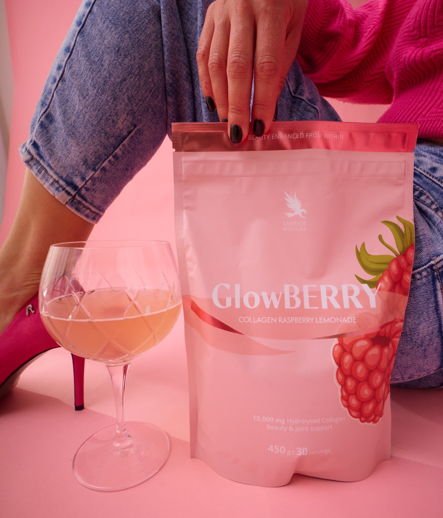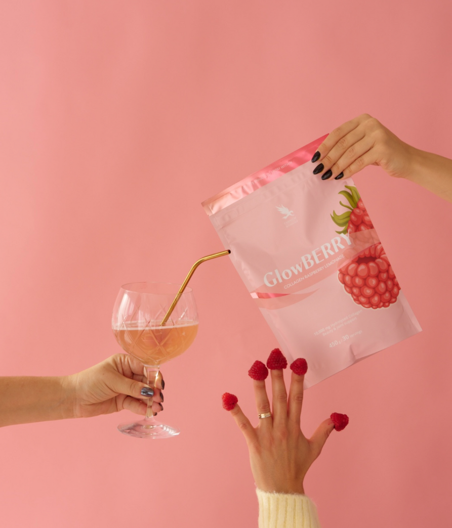 GlowBERRY ist eine erfrischende Kollagenlimonade mit Himbeergeschmack, die 10.000 mg hydrolysiertes Rinderkollagen, Hyaluronsäure, Vitamin C und Zink enthält. Vitamin C trägt zu einer normalen Kollagenbildung für die normale Funktion von Haut, Knochen und Knorpel bei, während Zink die Erhaltung gesunder Haut, Haare und Nägel unterstützt. GlowBERRY ist nicht nur ein Getränk, es ist Ihr tägliches “Self-Care-Ritual” in flüssiger Form, geschaffen für Momente, in denen Sie etwas für sich selbst, Ihre Haut und Ihr Wohlbefinden von innen heraus tun möchten.