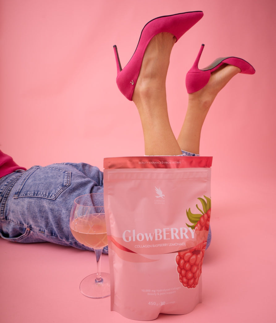 GlowBERRY ist eine erfrischende Kollagenlimonade mit Himbeergeschmack, entwickelt für Ihre tägliche Schönheits- und Wohlfühlroutine. Jede Portion enthält eine hohe Dosis hydrolysiertes Kollagen, Hyaluronsäure und eine sorgfältig abgestimmte Kombination aus Vitamin C und Zink – Mikronährstoffe, die nachweislich die Haut, das Immunsystem und den Zellschutz unterstützen. Die Formel wird durch Acai-Beeren und Hagebutte ergänzt.