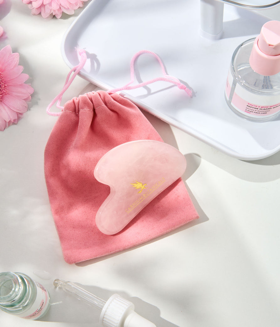 Unser Gua Sha aus natürlichem Rosenquarz setzt diese jahrtausendealte Tradition in einer modernen, sanften und ästhetischen Form fort. Rosenquarz, das Symbol für Liebe, innere Schönheit und Frieden, ermöglicht mit seiner glatten Oberfläche einen angenehmen Kontakt, der die Gedanken befreit und die tägliche Pflege in ein kleines Schönheitsritual verwandelt. Gua Sha, der Rosenquarzstein, ist in einer hübschen, weichen rosa Tasche verpackt – das perfekte Geschenk für alle, die sich mehr Zärtlichkeit, Balance und Momente für sich selbst wünschen.
